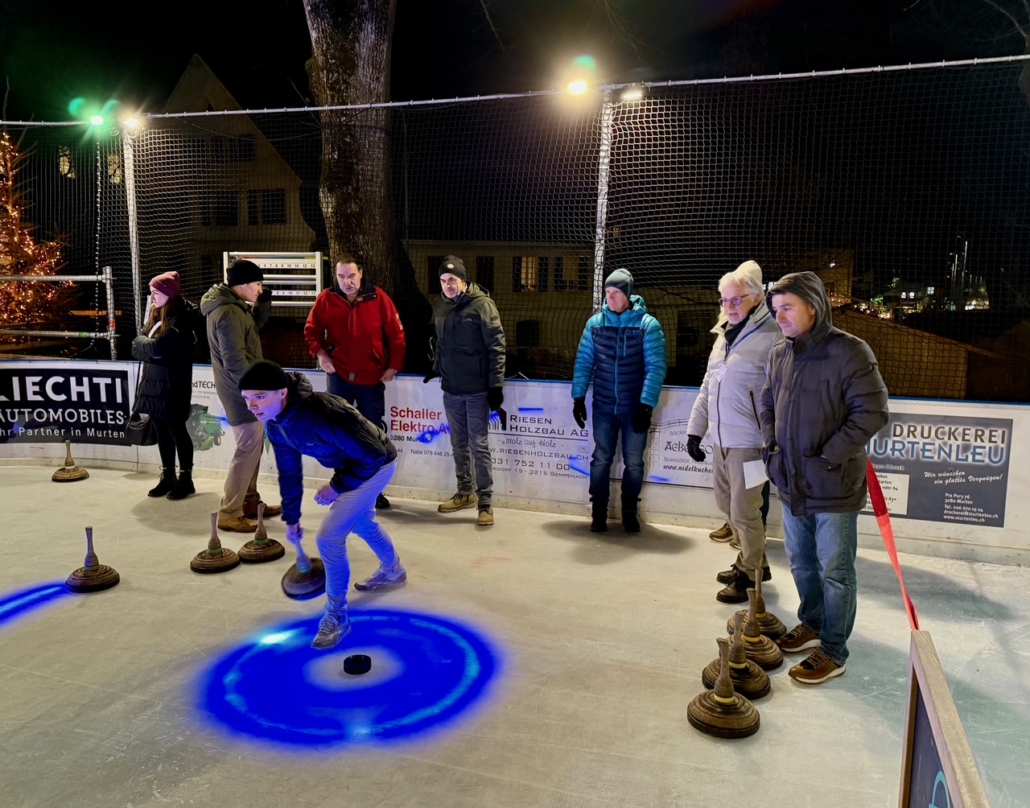 Im Rahmen von «Murten on Ice» lud die Fraktion der SVP zu einem geselligen Eisstockschiessen auf die lokale Eisbahn vor dem Berntor ein. Zahlreiche Kandidierende sowie Interessierte folgten der Einladung und nutzten die Gelegenheit für Wettkampf und Gespräche.